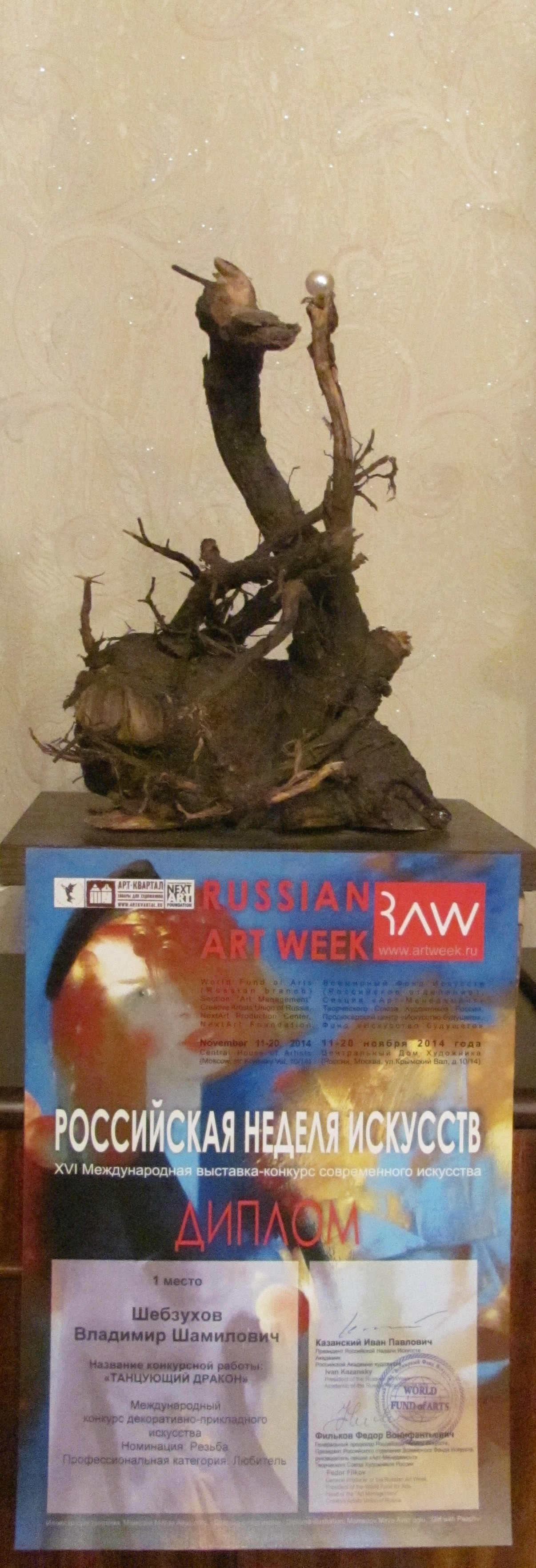 "Танцующий Дракон" (корень терновника)1 место автор В.Шебзухов международная выставка Современного Искусства Москва ЦДХ ноябрь 2014г