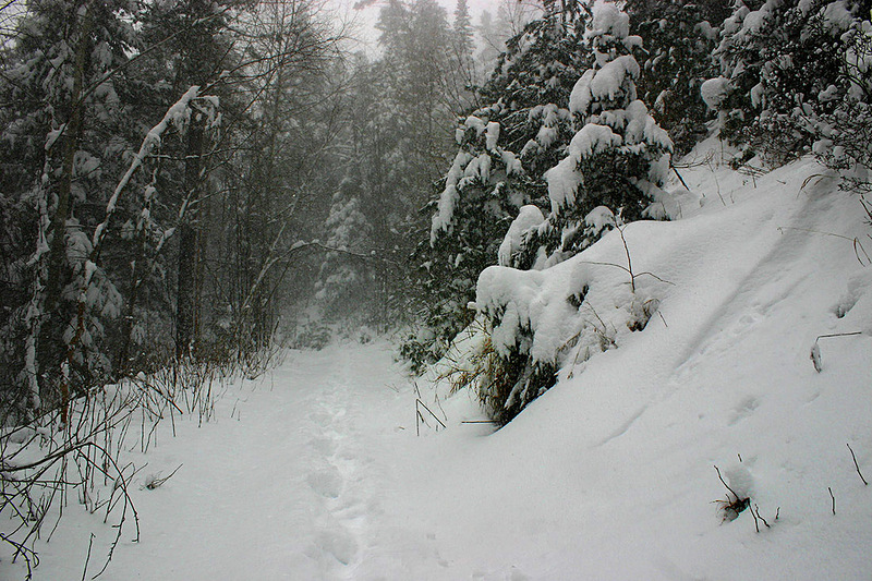 Степаныч поворачивает машину на лесную дорогу, едва видимую сквозь снежную пелену.