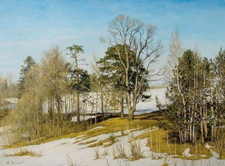 Один из дней смятенного апреля Струилось небо жаркой благодатью, Взирал скворец, устав от серенады, Художник Алексей Зотов. Проталины. Сертификат публикации: № 1353-1705929460-14093 Text Copyright © Надежда Шаляпина Copyright © 2015 Романтическая Коллекция 04 Мая 2015