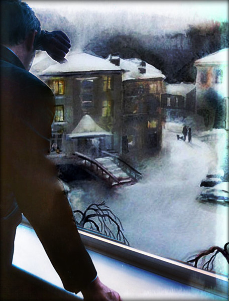 мороз вплетает иней в стекла окон.