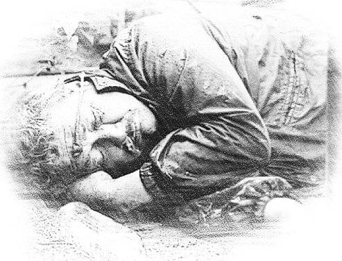 Мужик зубами пытался сорвать пробку. Пробка не поддавалась, и он с яростью стал рвать её дёснами, потому что оставшиеся зубы шатались и кровоточили. Наконец, с кровью выплюнул пробку и с жадностью приложился к горлышку. Пил с упоением, да так, что на ресницах закрытых глаз выступили слёзы. Потом, почувствовав, видимо, облегчение, оторвался от бутылки и уже мутнеющими глазами осмотрелся вокруг. Заметив стоящего неподалёку Димку, невесело улыбнулся: