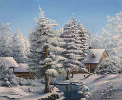 Густой пушистый снег всю ночь мечтательно кружился в феерическом танце, не останавливаясь ни на мгновение, и к утру укутал землю плотной белой периной. Тихо стало в лесу, словно все его обитатели куда-то исчезли. Даже ветер-проказник не тревожит верхушки деревьев. Только где-негде поскрипывают иногда разлапистые еловые ветки под непомерной тяжестью, да с глухим шорохом осыпаются с вершин сосен, искрящиеся на зимнем солнце, снежные водопады. Ах, что может быть лучше в такую морозную погоду, чем попивать ароматный чай вприкуску с домашними пирогами, любуясь из окошка на белоснежный наряд сударыни Зимы… Валентина Валевская - "Сударыня Зима" - холст, масло Сертификат публикации: № 1381-2411896952-16305 Text Copyright © Анатолий Валевский Copyright © 2016 Романтическая Коллекция 26 Июля 2016