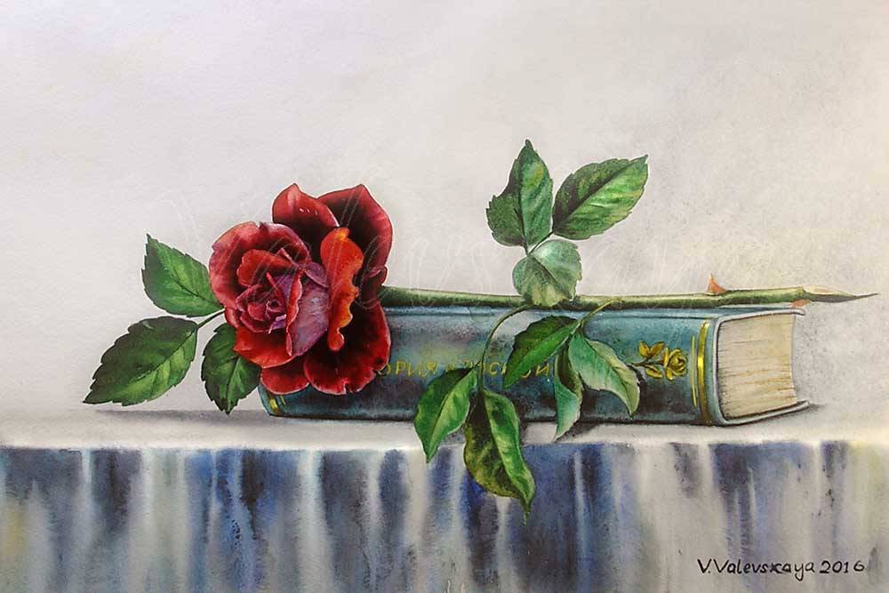 Роза и книга (из цикла "Микроминиатюры по картинам Валентины Валевской")