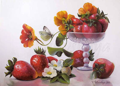Валентина Валевская - "Клубника в настурциях" - холст, масло