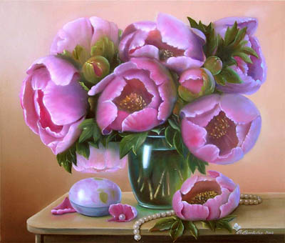Любимые пионы (из цикла "Микроминиатюры по картинам Валентины Валевской")