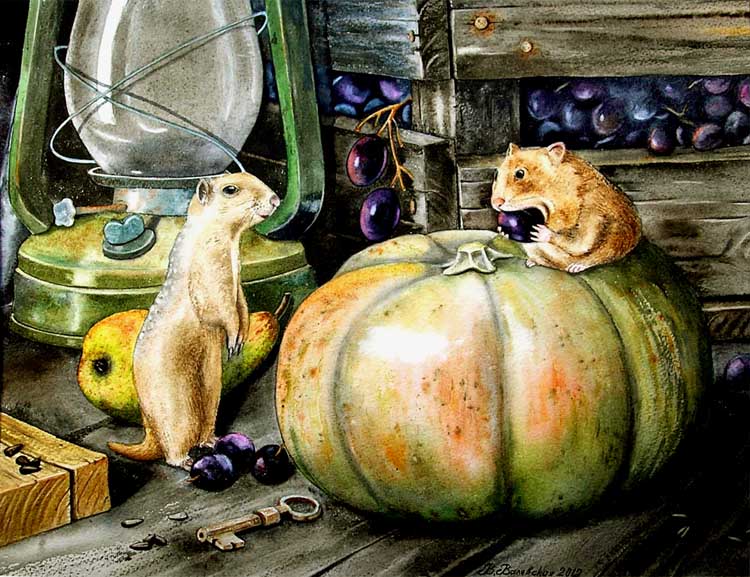 Суслик и Хомяк (из цикла "Микроминиатюры по картинам Валентины Валевской")