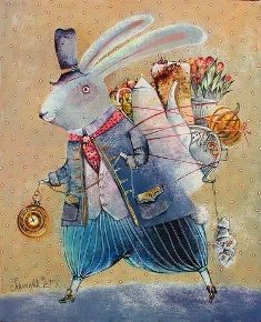 Белый кролик с часами женился.