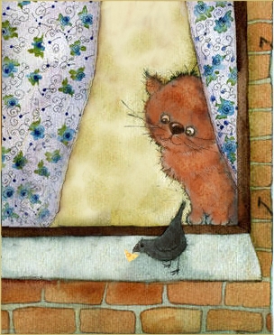 Кошка и ворона