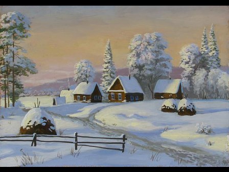 Деревенька в снегу, Серебрится простор, Нагоняет тоску, Белоснежный узор, Завывает пурга, В околотке лесном, В небесах облака, Загуляли пред сном. О, небесная высь, Молчаливая даль, Ты ко мне прикоснись, Золотая печаль.