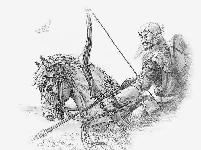 Горела съезжая изба, в которой всегда останавливались купцы, везущие свои товары в далёкую Московию. Мужик с чёрной окладистой бородой выскочил на крыльцо, но тут же свалился на землю, пронзённый стрелой. Он морщась, тщетно пытался вытащить её из плеча. Подскочил на коне ногаец, довольно улыбнулся и взмахнул саблей.