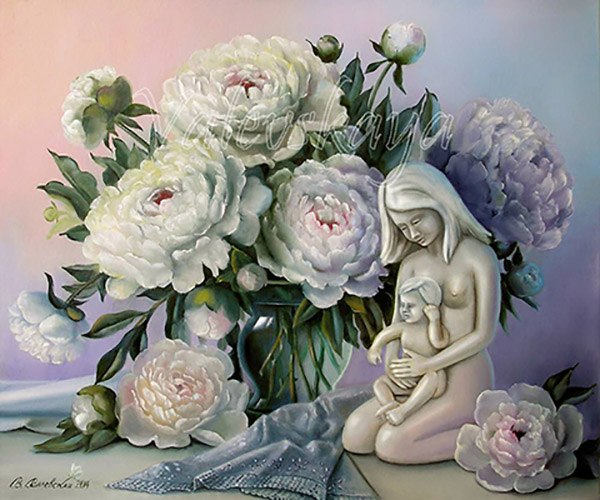 Многообразен и чудесен сказочный мир цветов, щедро дарящих нам радость созерцания естественной природной красоты. От самых мелких, рассыпанных разноцветным бисером по мшистым берегам каменистых фьордов холодных северных широт, до ярких гигантских красавиц, томно раскрывшихся под сенью влажных тропических джунглей. И конечно же, знаменитое семейство пионов одно из самых замечательных. Во многих странах их называют королевскими цветами, которые могут поспорить красотой даже с общепризнанной царицей - розой. Пышные, полнящиеся атласными ароматными лепестками, цветы пионов символизируют искреннюю любовь и настоящее счастье. Нежные бледно-розовые и горячие алые, словно пропитанные пламенем всепоглощающей страсти, полупрозрачные лимонные с мягким кремовым отливом и густые тёмно-бордовые - все они дышат радостью жизни, напитаны чувственностью и у каждого свой собственный волшебный аромат. Но дивные белые пионы, символизирующие истинную чистоту, особенны даже среди своих родственников. По древнему поверью именно они способны противостоять злу и чёрной зависти, оберегая человека и его жилище от всевозможных бед. Валентина Валевская - "В белых пионах" - холст, масло Сертификат публикации: № 1381-1678918175-19494 Text Copyright © Анатолий Валевский Copyright © 2018 Романтическая Коллекция 25 Апреля 2018