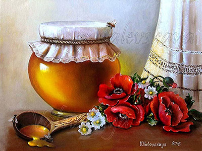 Помните, как мы в детстве мечтали отыскать хоть какой-нибудь завалящий клад?! Для этого, наверное, многие забирались на пыльные чердаки, где покоились старые вещи, уже давным-давно никому не нужные. Там всегда можно было покопаться в давних подшивках пожелтевших газет и журналов, в надежде натолкнуться на секретное указание, где следует искать. Не обходили вниманием кладовки и тёмные подвалы, а особенно - загадочные развалины. Ведь именно в их потемневших от времени стенах, как утверждали сказки и легенды, веками хранились замурованные клады. Как правило, в тайной нише должен был скрываться горшочек с золотыми монетами, старинными ожерельями или драгоценными каменьями, а то и всё вместе... Валентина Валевская - "Баночка мёда" - холст, масло Сертификат публикации: № 1381-3154118653-19672 Text Copyright © Анатолий Валевский Copyright © 2018 Романтическая Коллекция 30 Мая 2018