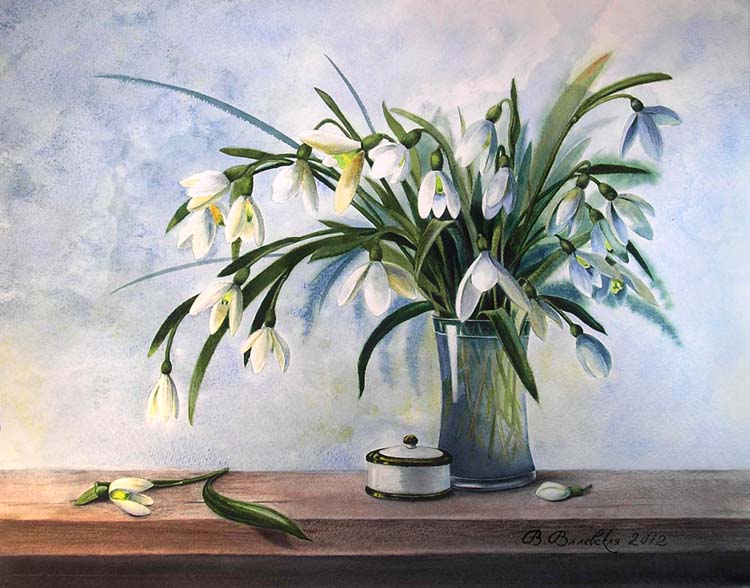 Валентина Валевская - "Натюрморт с подснежниками" - акварель