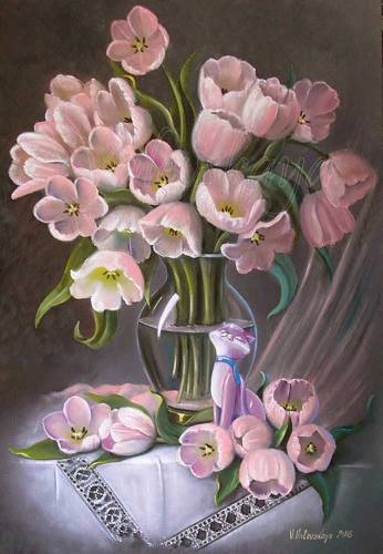 Валентина Валевская - "Нежные тюльпаны" холст, масло