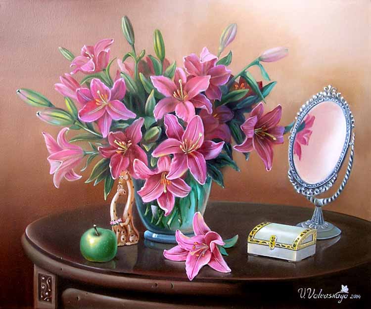 Валентина Валевская - "Лилии в натюрморте" - холст, масло