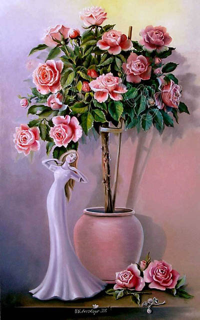 Валентина Валевская - "Розовый натюрморт" - холст, масло