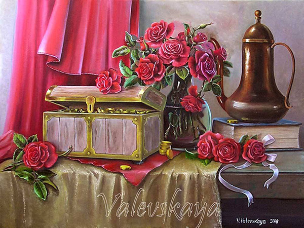 Валентина Валевская - "Сундучок с золотыми монетами" - холст, масло
