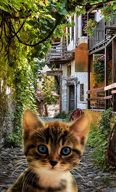 Голубоглазка пока совсем молоденькая кошечка, можно сказать - котёнок, но уже отличается необычной любознательностью и элегантностью. А ещё, жильцам дома кажется, что дворовая любимица удивительно романтична. Чтобы ощутить это достаточно встретиться с ней взглядами. Кстати, Голубоглазка вовсе не сиамская или, допустим, бирманская, которые славятся лазоревым цветом радужки, а самая обычная дворовая кошечка, но вот глаза... собственно говоря, из-за них она и получила своё прозвище. Если поманить Голубоглазку, то она с готовностью подбегает, но вначале садится чуть поодаль и какое-то время испытующе смотрит в глаза, словно спрашивая: "Хороший ли ты человек? Не обидишь меня?" Под этим серьёзным взглядом становится несколько неуютно, и почему-то в памяти начинают всплывать давние проступки, о которых хотелось бы забыть навсегда (согласитесь, наверное, у каждого есть такие потаённые воспоминания). А кошечка ждёт и внимательно вглядывается, а затем, приняв для себя какое-то решение, подходит и доверчиво прижимается к ноге, ожидая ласки. Вообще-то она очень общительная и игривая, как и любой другой котёнок в её возрасте, но иногда становится такой серьёзной и задумчивой, что жильцы, проходящие мимо, невольно приглушают голос, чтобы не потревожить Голубоглазку. А она, удобно устроившись в переплетении виноградных лоз и опустив голову на вытянутые передние лапки, устремляет задумчивый взгляд куда-то вдаль, словно прозревая там свою то ли прошлую, то ли будущую судьбу. Ведь не зря же говорят, что у кошек девять жизней, поэтому пусть все они будут для Голубоглазки счастливыми...