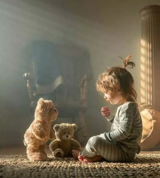 Все знают, что в хорошей компании время течёт незаметно, а любое занятие становится в два раза интереснее, особенно, если эта компания состоит из верных друзей. Ну, а кто способен быть вернее двух стареньких игрушечных медвежат, всегда внимательно слушающих свою маленькую хозяйку и во всём с ней соглашающихся?! Девочка в них души не чает и может часами играть с плюшевыми приятелями или делиться с ними своими детскими секретами, зная, что друзья не проболтаются. А медвежата Гоша и Тоша с любопытством ловят каждое слово малышки и очень радуются её успехам. Впрочем, так же они радовались и успехам её мамы, с которой тоже дружили, когда та была вот таким же ребёнком. Но те времена давно минули, и теперь плюшевые друзья заботятся о маленькой Веронике. Они стараются, чтобы девочка не скучала, веселят её, охотно поддерживают во всех играх и безропотно исполняют любые роли, которые малышка для них придумывает. Правда она пока ещё плохо произносит букву "р", но это не беда - медвежата и так хорошо понимают свою хозяйку, тем более, что это временное явление, и скоро у Веронички всё прекрасно получится, ведь она старательно тренируется. А Гоша с Тошей терпеливо слушают и изо всех сил поддерживают девочку. Так они дружной компанией проводят весь день. А когда приходит время отправляться спать, плюшевые медвежата устраиваются возле подушки в изголовье, чтобы охранять сон Вероники и тихонько рассказывать ей добрые и светлые сказки - ведь на то они и верные друзья, пусть даже и игрушечные...