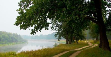 Шумит красавица-дубрава, Внизу красавица-река. Тропинка росная – направо, Налево – мир березняка. Вдали забытая часовня, Над ней – Христовы небеса, Глядят глазницы окон сонных, И от бревна к бревну - слеза. О, колыбель, земля родная, Истоки песенных лугов! Иду, душой благоухая, Как в райском облаке цветов!