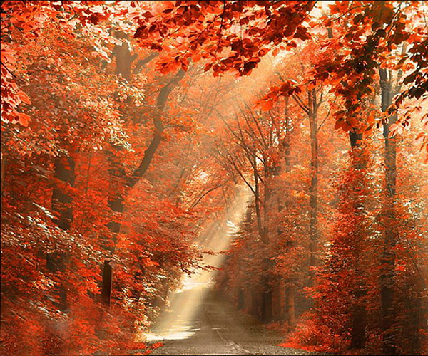 Чаровница Осень меняет наряды чуть ли не каждый день, а бывает, что и не по разу. То она меланхолично-дождливая в моросящем шлейфе тихонько шелестящих мелких капель, оседающих на алых серьгах рябины алмазными искорками. То золотисто-солнечная в медленно плывущем куда-то легчайшем шифоновом покрывале из паутинок отважных осенних летунов - маленьких паучков, отправляющихся на поиски новых территорий. И, словно прощаясь с ними, Осень, вдруг, становится романтично-задумчивой, зябко кутаясь в полупрозрачную вуаль прохладного тумана, сонно плывущего меж задумавшихся потемневших деревьев... Но вот туман неожиданно тает, и грациозная хозяйка поры увядания внезапно феерично предстаёт в будоражащем воображение горячем багрянце, соблазнительно просвеченном насквозь ещё тёплыми лучами солнца! До чего же хороша - глаз не оторвать! И замирает сердце... необъяснимое предощущение чего-то прекрасного волнует и порождает робкие надежды на исполнение заветных мечтаний. Вот он - чудесный миг волшебства! Ах, какой же наряд выберет нынче прекрасная и величественная чаровница?..