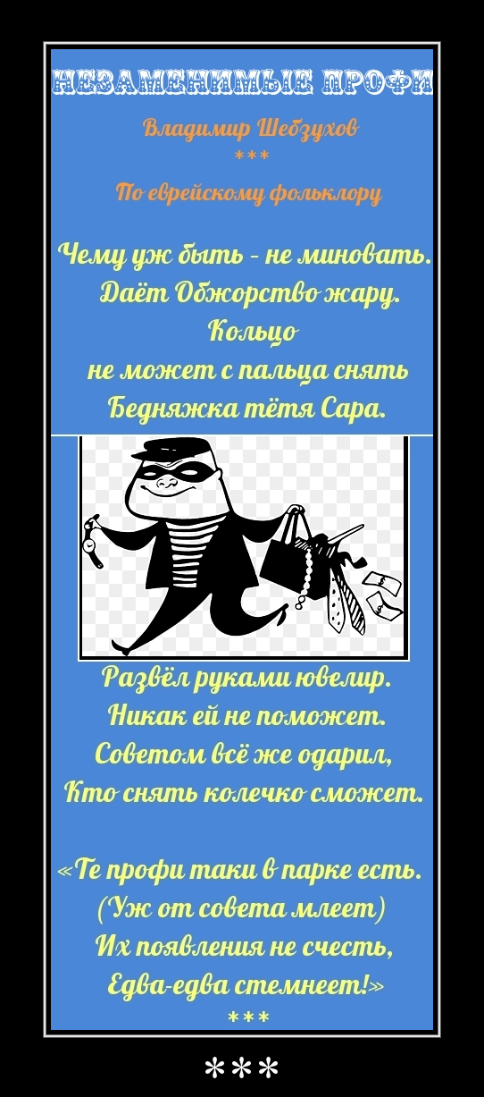 По еврейскому фольклору Чему уж быть – не миновать. Развёл руками ювелир. «Те профи таки в парке есть. Сертификат публикации: № 1323-2676545025-26436 Text Copyright © Владимир Шебзухов Copyright © 2022 Романтическая Коллекция 22 Апреля 2022