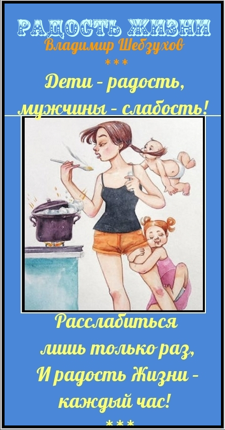 Дети – радость, мужчины – слабость! Расслабиться лишь только раз, Сертификат публикации: № 1323-3403118616-27014 Text Copyright © Владимир Шебзухов Copyright © 2022 Романтическая Коллекция 30 Августа 2022