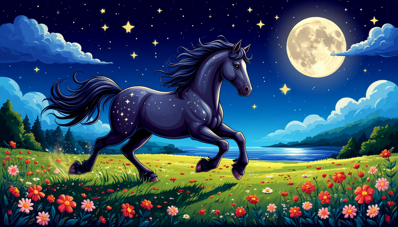 Звёздный конь бежит по лугу,