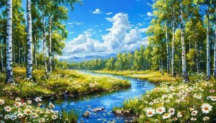 Рядом речка бежит голубая,