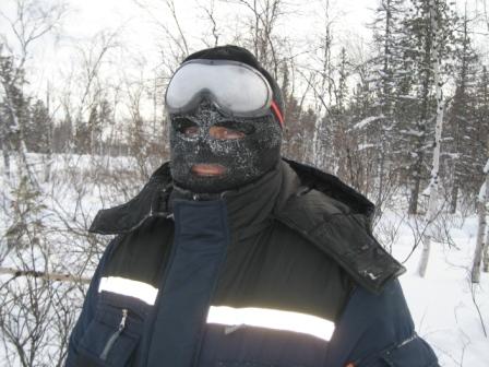 Следующий день – бело-голубого цвета. Меня волокут по земле. Другого варианта для проезда по лесотундровой трассе шириной 70 сантиметров – нет. Проскочить можно только на «Буране». А ехать на нём верхом двум крепким мужикам в полной полярной амуниции, да ещё в мороз, нет никакой возможности. Не поместимся попросту. К снегоходу цепляют низкие санки-ящик с высотой бортика, как у ящика для помидор, то есть, сантиметров 8-10, не более того. Сидя ехать – тоже невозможно: выпадешь. Остается – только лёжа. Смугловатый, круглолицый вежливый геодезист Дима с трехдневной небритостью на лице надевает свою «палаческую» шапку с прорезями ( хоть какая-то защита от ледяного морозного ветра). Я ложусь в ящик-санки, крепко сжимая за пазухой фотоаппарат для съемки точек трассы и реперов. И мы поехали. И ездить нам так – ещё полмесяца.